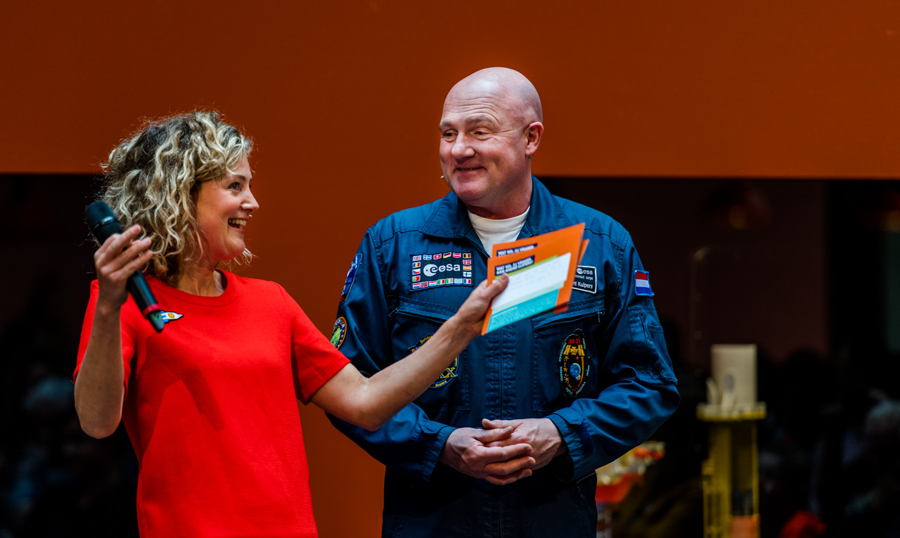 Astronaut André Kuipers gaf woensdagmiddag 29 maart een uitverkocht jeugdcollege in het Maritiem Museum Rotterdam, ter gelegenheid van de opening van ‘Expeditie Knappe Koppen’. In deze nieuwe familietentoonstelling maken bezoekers kennis met vier avontuurlijke wetenschappers uit ons VOC-verleden. Als hedendaags ontdekkingsreiziger speelt André Kuipers een prominente rol in de expo. Hij herkent de veelzijdigheid, nieuwsgierigheid en het lef van zijn voorgangers.
