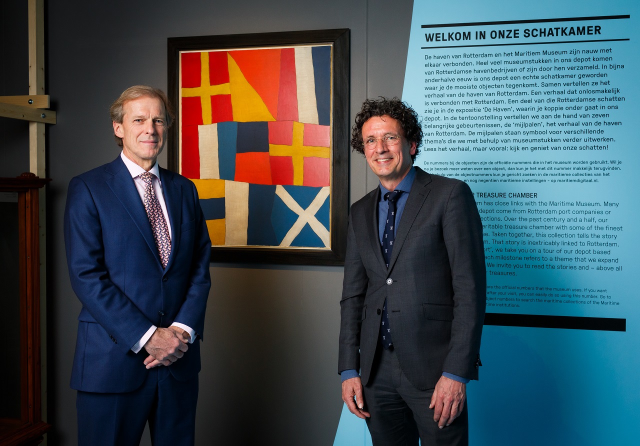 Rotterdam, 29 maart - Het Havenbedrijf wordt hoofdsponsor van de nieuwe tentoonstelling ‘Bestemming Havenstad’ die het Maritiem Museum in december 2022 opent. Met de ondertekening van de sponsorovereenkomst door museumdirecteur Bert Boer en president directeur van het Havenbedrijf Allard Castelein werd de samenwerking tot en met 2028 bezegelt.