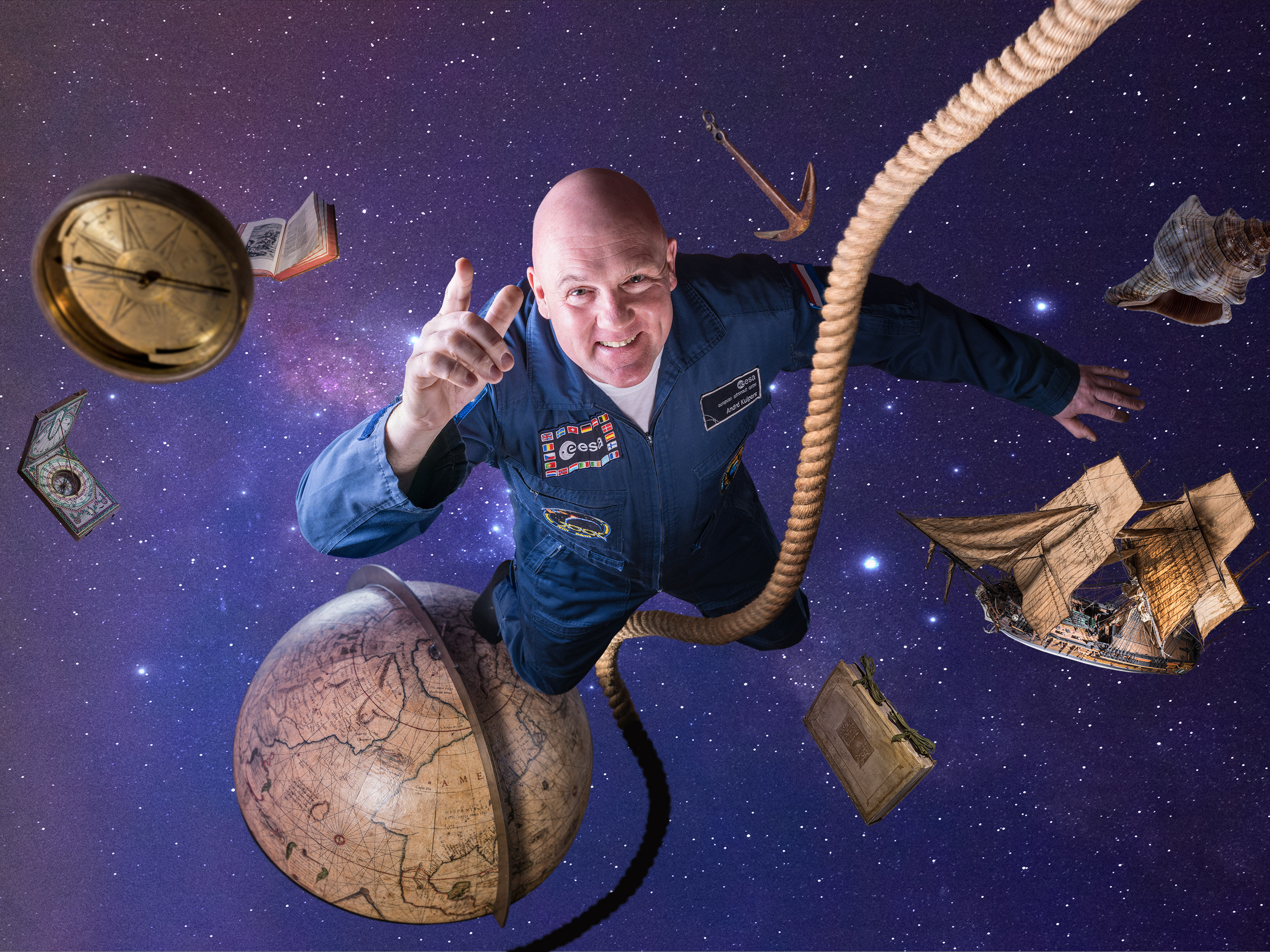 Woensdag 29 maart a.s. opent ruimtevaarder André Kuipers de familietentoonstelling ‘Expeditie Knappe Koppen’ (vanaf 8 jaar, te zien tot oktober 2018) in het Maritiem Museum Rotterdam. Als moderne ontdekkingsreiziger herkent hij veel in VOC-avonturiers, zo vertelt hij in de expo. De opening wordt gevierd met een jeugdcollege, gepresenteerd door Nienke de la Rive Box (bekend van Het Klokhuis). Kinderen mogen dan vragen stellen aan André. ‘s Avonds is er een besloten gastcollege voor de zakelijke relaties van het museum.