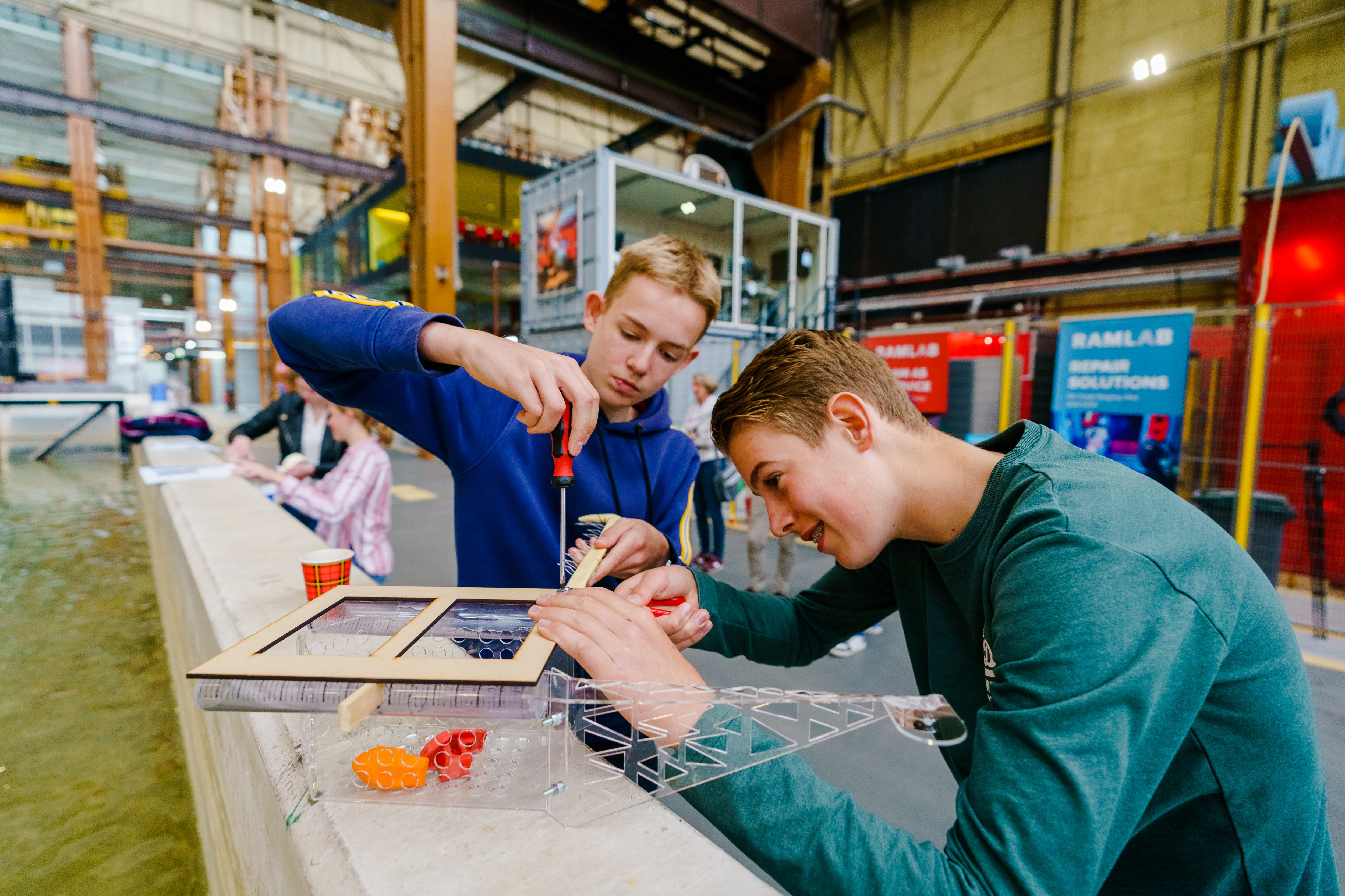 Van het Maritiem Museum Rotterdam en CLEAR RIVERS kregen technasiumleerlingen de opdracht om een slimme plasticvanger te ontwikkelen. Scholieren van zeven technasia verdiepten zich in manieren om drijvend plastic uit het water te halen en ontwierpen hun eigen plasticvangers. Het ontwerp van het team van het Christelijk Lyceum Delft, “de Zeekoe”, kwam als winnaar uit de bus. Tijdens de finale, die vandaag plaatsvond in de RDM Campus Innovation Dock in Rotterdam, werden prototypes getest in een bassin.